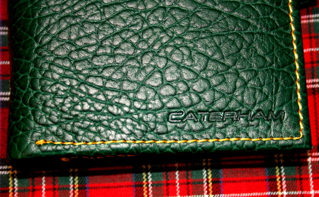手帳を閉じると、右下にはCATERHAMロゴが刻んであります。