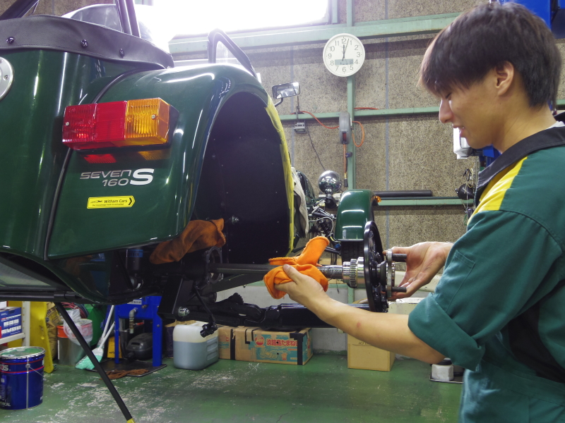今日のファクトリーでは、昨日のブログにも登場したSEVEN160のLSD組込作業が進行中です。従来のドディオンアクスルではなく、ライブアクスル式を採用したSEVEN160のデフ作業はまだ珍しいと思いますので、こちらでご紹介しましょう。