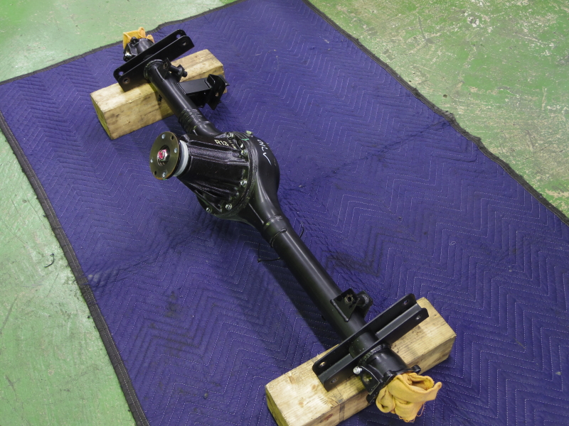 リアダンパーやトレーリングアーム、左右の位置決めをしているパナールロッドなどを取外し、最終的にアクスル・アッセンブリーを取り外しました。
