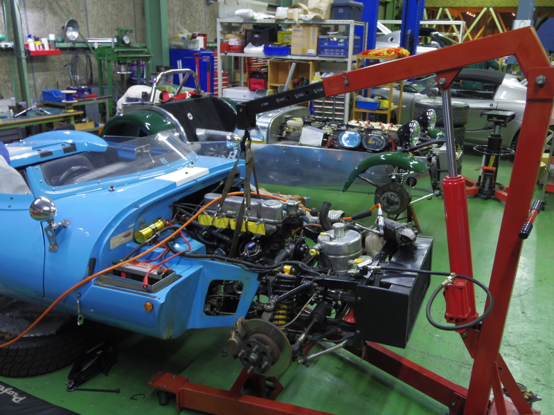 ウィザムカーズ・ファクトリーでは今日も様々な整備が進行中です。完成間近のスーパーセブンの隣りでは、ジネッタG4の整備作業が進んでおります。今回はエクステリアからエンジンルームまで、色々なモディファイを追加しての納車です。