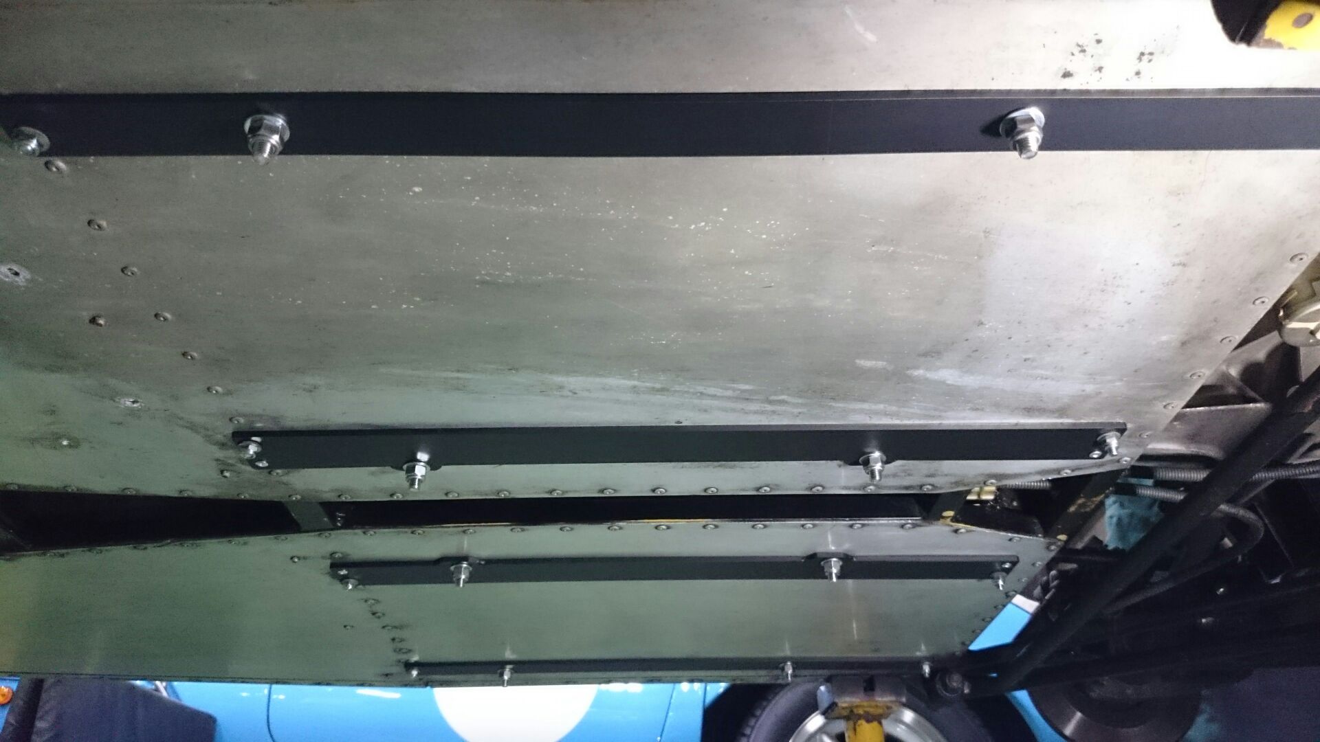 新しいシートへの交換にあたり、シートレールの固定方法が現状とは異なるため、床面への補強プレートを新たに製作致しました。これでしっかりと床面の強度を確保して、問題無く最新のシートをお使いいただけます♪