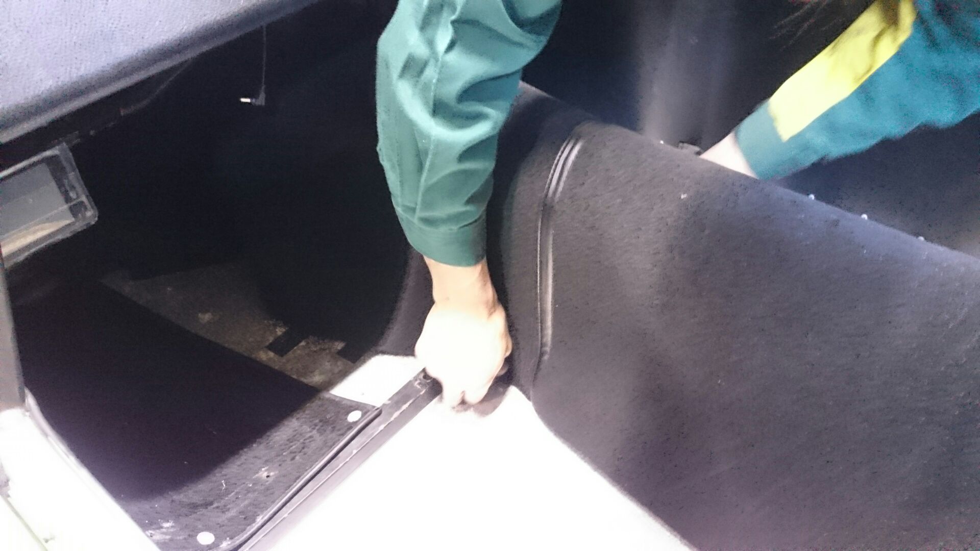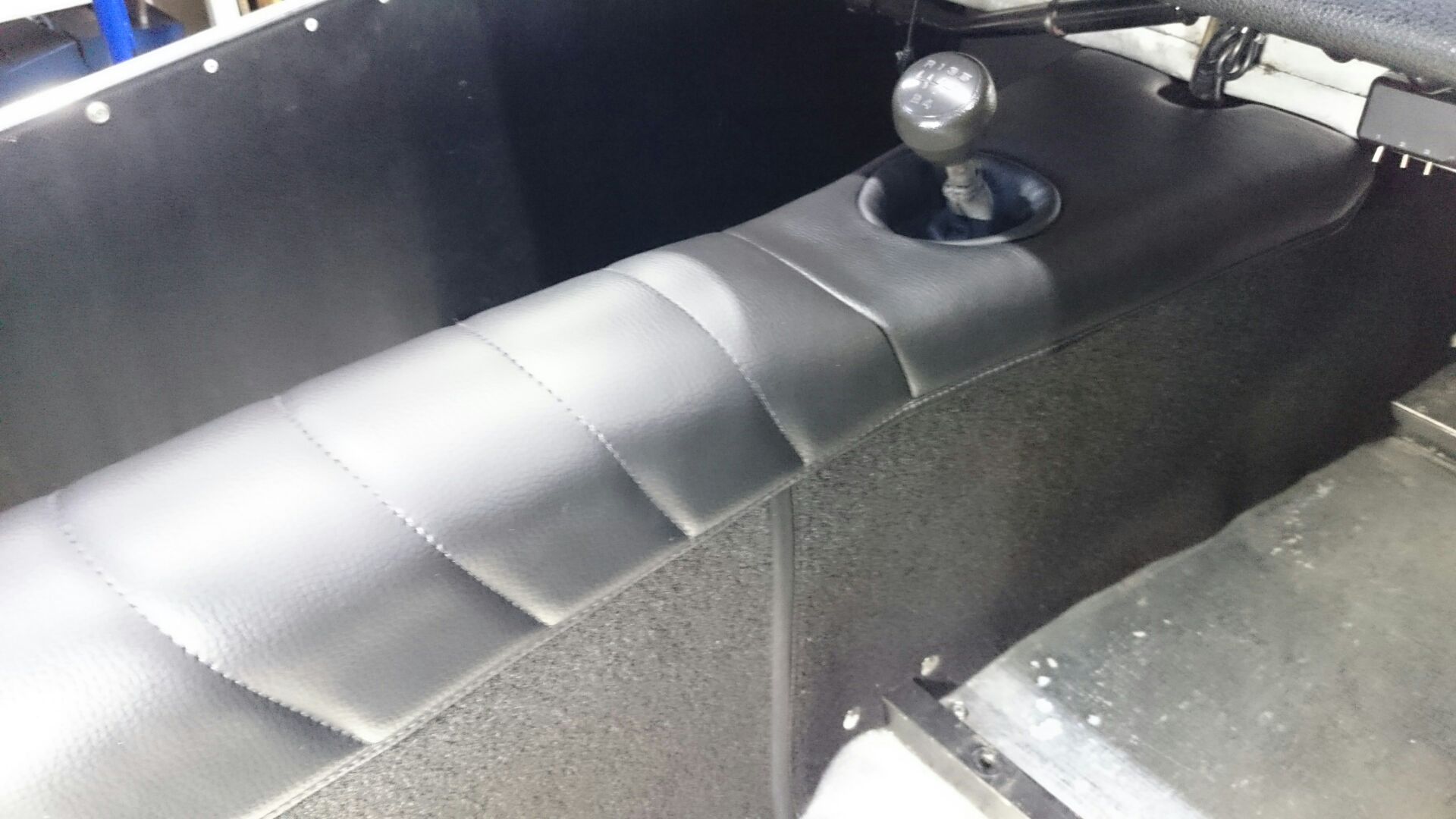 これはセブンのセンタートンネルに覆っているカーペットです。セブンのインテリアは直射日光や外気にさらされることが多いため、どうしても経年劣化によってヤレてしまいがちです。今回はオーナー様のご要望で、新品のカーペットへ交換しリフレッシュいたしました!
