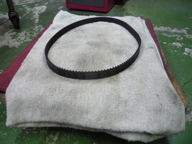 外したタイミングベルトです。細かいクラックが見受けられます。