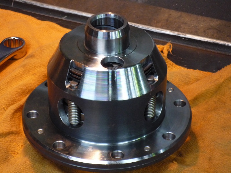 そしてこちらが今回組み込むLSDです。先ほどのノーマルデファレンシャルと違って、中身が見えにくいのですが、よく見ると上のほうに湿式クラッチが見えています。このクラッチが作動することにより、差動制限が掛かる仕組みです。