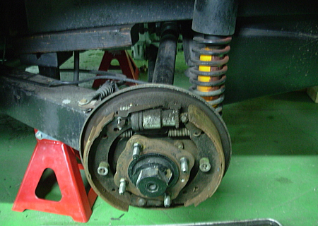 リアの足回りでも、まずはブレーキの分解・点検を実施中です。