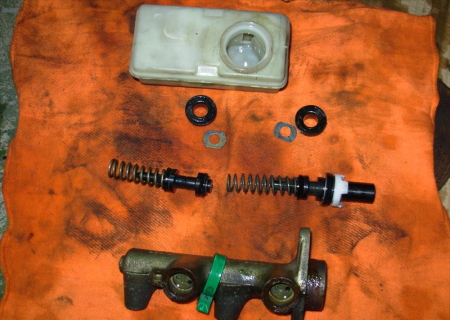 もちろんクラッチレリーズシリンダーやクラッチマスターシリンダーもOHです。さらに下の写真はエンジン・ステディロッド、ここにもブッシュが入っていますので、今回の整備で交換です。