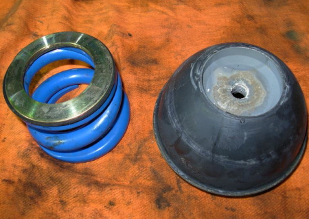 オイルシールやシャフト、スプリングシート部のテフロンシート、ブッシュ(ピロボール含む)とバンプラバーは全て新品に、さらにはスプリングのヘタリ具合をチェックし、ダメなものは全て交換しています。