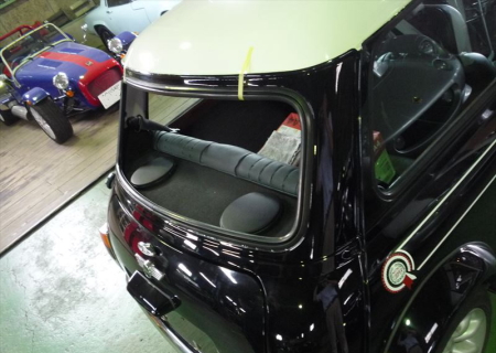 さらにウィンドウも取り外しが始まりました。フロントだけではなく、クォーターウィンドウやリアウィンドウまでもすべて取り外します。