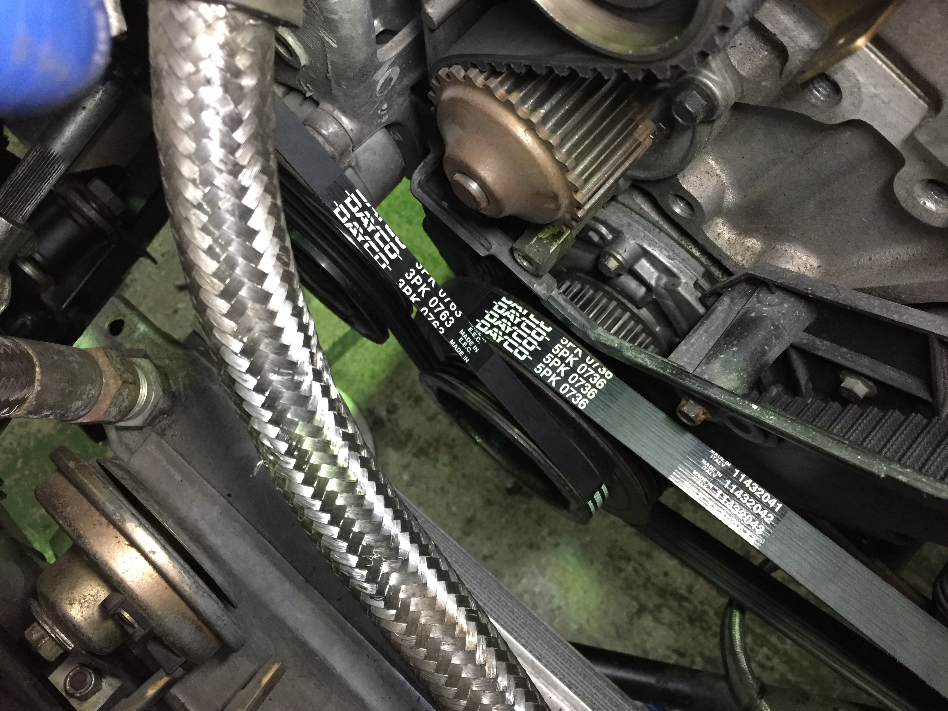 かなり傷んでいたセカンダリオイルポンプ用のベルトとオルタネーターベルトも新品に。