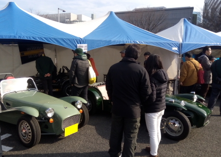 今週末はサーキット走行会や新年会などイベントの連続でしたが、実はもう一つ、東京お台場で開催される、日本クラシックカー協会のニューイヤーミーティングにも参加させて頂きました。毎年1月に開催される恒例のイベントですが、好天にも恵まれ今年もたくさんのお客様にご来場いただきました。今回弊社はケータハムカーズジャパンと共同で、SEVEN620R、SEVEN SPRINT、そしてロータスセブンSr.2を展示しました。