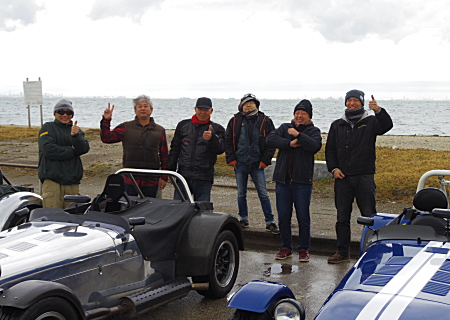 最初は寒さで笑顔もぎこちない感じでしたが、やっぱりセブンが連なって海沿いをのんびり流していると、なぜかそれだけで楽しくなってきます。