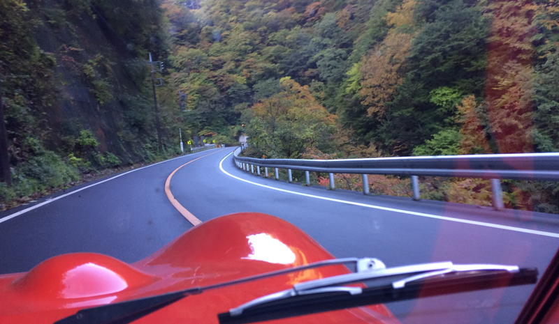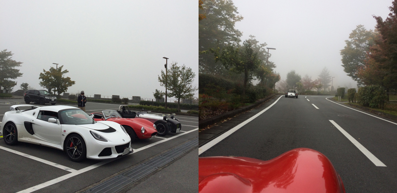 今回G4はペダルポジションの変更を行ったので、前回以上に楽しくG4をドライブ出来るはず!そのテストも兼ねたドライブです。集合場所は奥多摩湖畔の駐車場。天候は晴れてはいるものの、前日夜に降った雨のせいで路面が乾いておらず、気持ち良く走れるか少し不安を抱えてのスタートとなりました。