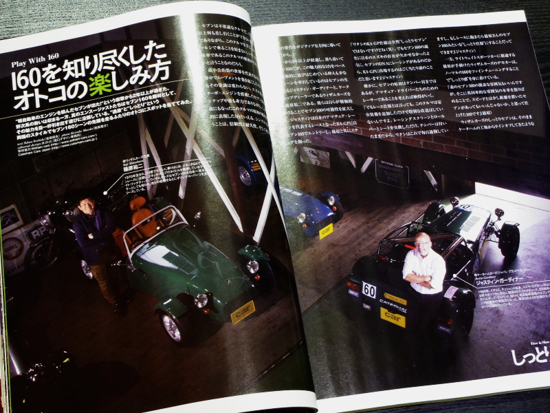 さらにケータハムカーズ・ジャパンのジャスティン・ガーディナーさんと弊社の篠原が、K4GPに参戦したSEVEN160やウィザムカーズのコンプリートカーの160について語った記事も掲載されています。今月号のカーマハジンは、セブンをご検討中の方にとって、かなり参考になる(背中を押してくれる)内容です。ぜひ読んでみて下さい。