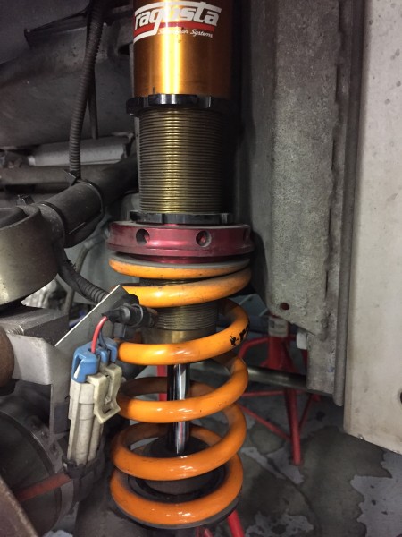 全長調整式のサスペンションのスプリングに遊びがあるのはおかしいと思い、確認してみたところスプリングが経年変化で縮んで(ヘタって)いることが分かりました。