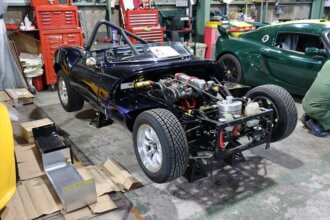今回展示会用にご用意した車両は、エアロスクリーン、ヒーターレス、アルミカーボンの最軽量440kg仕様のSEVEN170Rです。おなじみSUZUKI製の小排気量ターボエンジンは最新のR6Aにアップデートされ、日本の軽自動車規格に適合しながらも、究極のドライビングマシンに仕上がった一台です。