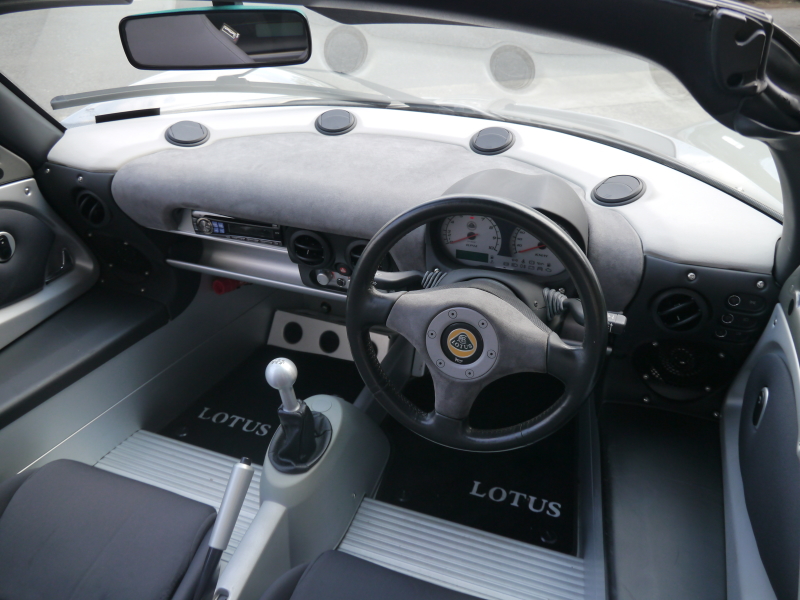 インテリアはこの年式のスタンダードな仕様で、ロータスらしいモダンかつ大胆な簡素化を最も強く感じさせる世代です。