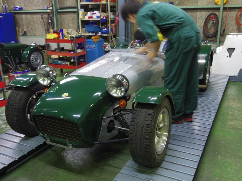 こちらのSEVENは車検のご依頼でご入庫です。ロータスのゴールドリーフカラーを再現したこの車体は、自動車誌の紙面を飾ることも多かったので、 ご記憶の方も多いのではないでしょうか。